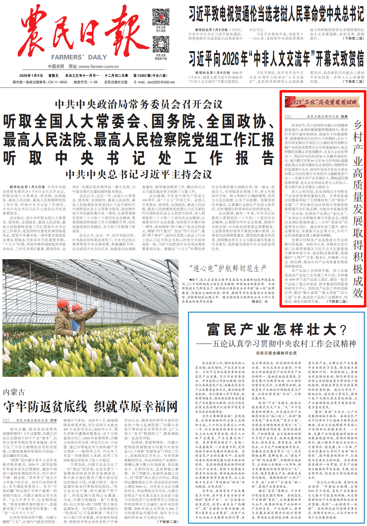 发展乡村特色产业是推进乡村全面振兴的基础。2025年以来,各级农业农村部门认真贯彻落实习近平总书记重要指示精神和党中央、国务院决策部署,围绕做好“土特产”文章,强龙头、补链条、兴业态、树品牌,推动乡村产业高质量发展取得积极成效。