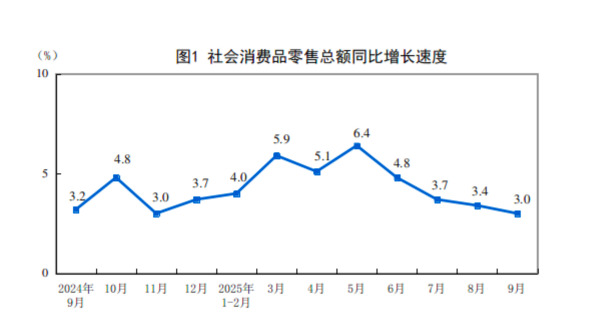 从9月当月来看,9月规模以上工业增加值同比增长6.5%,回升1.3个百分点,为3个月来最高水平;社会消费品零售总额同比增长3.0%,增速较8月回落0.4个百分点。1-9月,全国固定资产投资同比下降0.5%。
