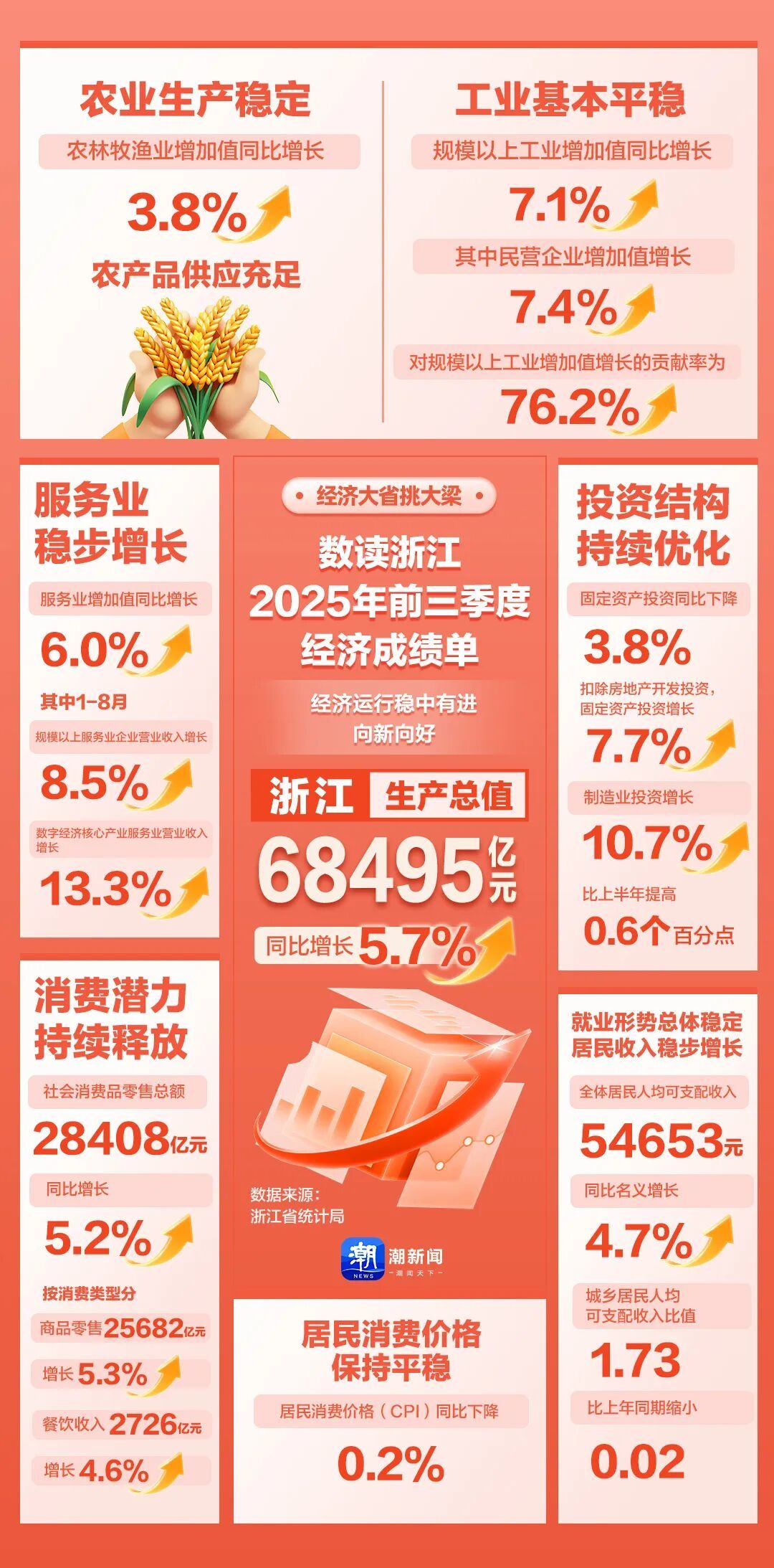 前三季度,浙江坚持以习近平新时代中国特色社会主义思想为指导,深入贯彻习近平总书记重要指示批示和考察浙江重要讲话精神,忠实践行“八八战略”,全面落实党中央、国务院决策部署,扎实推进“十项重大工程”,有力应对外部挑战,经济运行稳中有进、向新向好,充分展现“经济大省挑大梁”的责任担当。