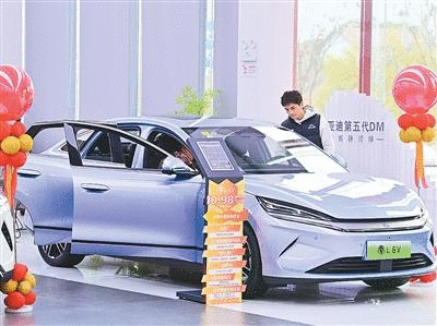 近日,消费者在江西省赣州市章贡区沙石镇一家新能源汽车销售门店内选购新能源汽车。 胡江涛摄(人民视觉)