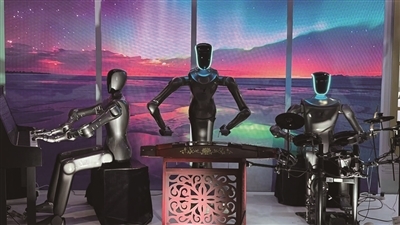 ▲杭州海创人形机器人创新中心 自主研发的“和璇”机器人乐队