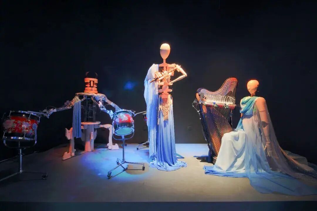 中国数字音乐基地内“墨甲”机器人乐队正在演奏国风民乐。受访者供图