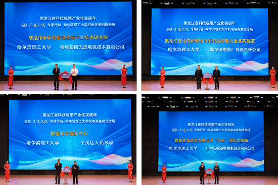 本次活动在省教育厅的指导下,得到省科技厅、市工商联、市科技局的大力支持,共吸引省内30余所高校,以及工业企业、科研院所、投融资机构等300余家单位参与。现场集中展示了50余项机电装备与先进制造领域的最新成果。哈尔滨理工大学与5个区、县签署校地合作协议,为地方产业发展注入高校智慧与创新动能;5项产学研合作项目现场签约,总金额820万元,实现了高校科研价值与企业需求的有效衔接;“校地联合创新中心”“非道路车辆电驱动系统产业技术研究院”“黑龙江省适应新型电力系统高校电机重点实验室”及“智能化新能源农机系统‘头雁’团队工作站”正式揭牌,构建起集技术攻关与人才培养于一体的协同平台。活动最后环节,由哈尔滨理工大学科技处副处长黄韬主持重点科技成果推介,共发布5项优质科技成果。