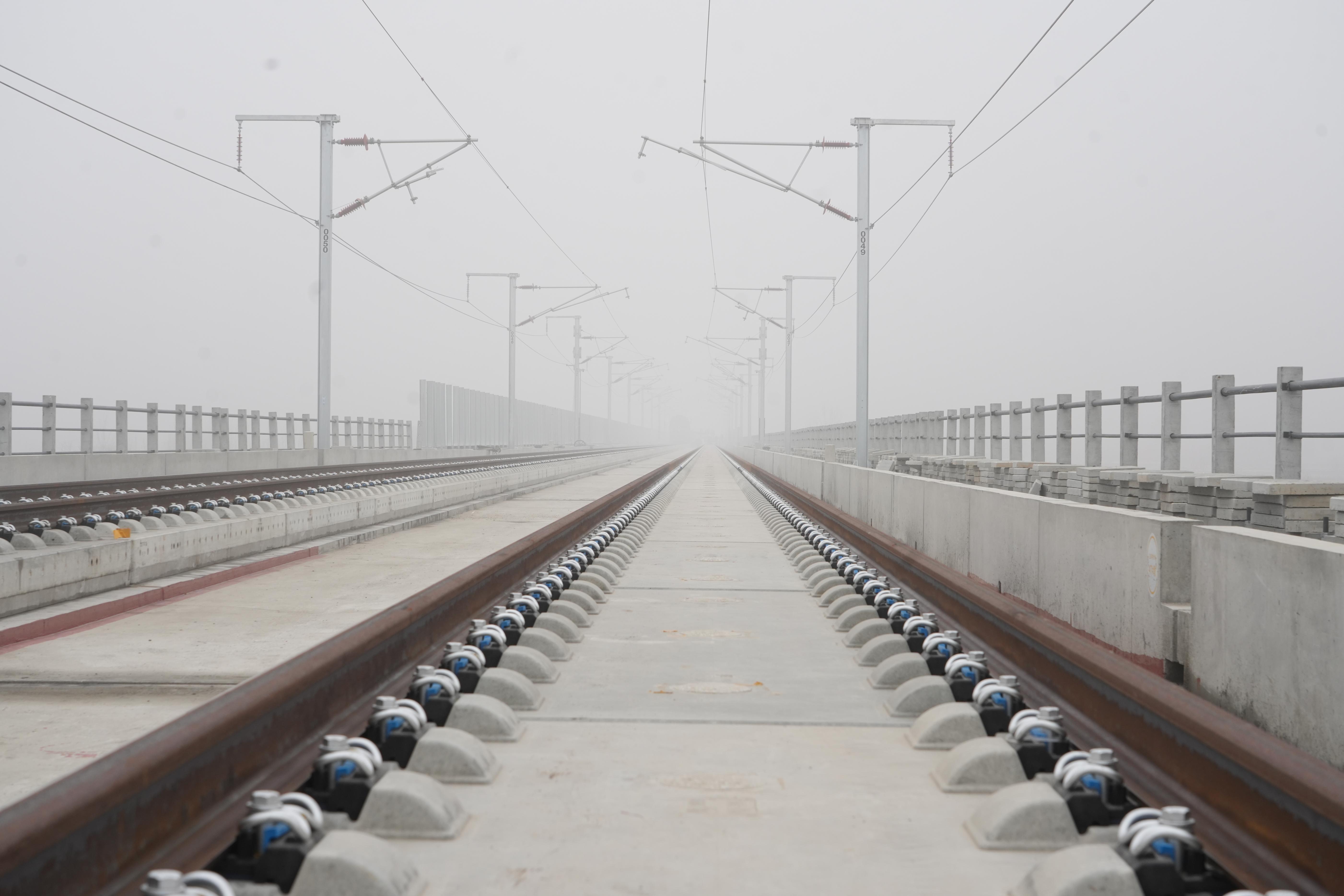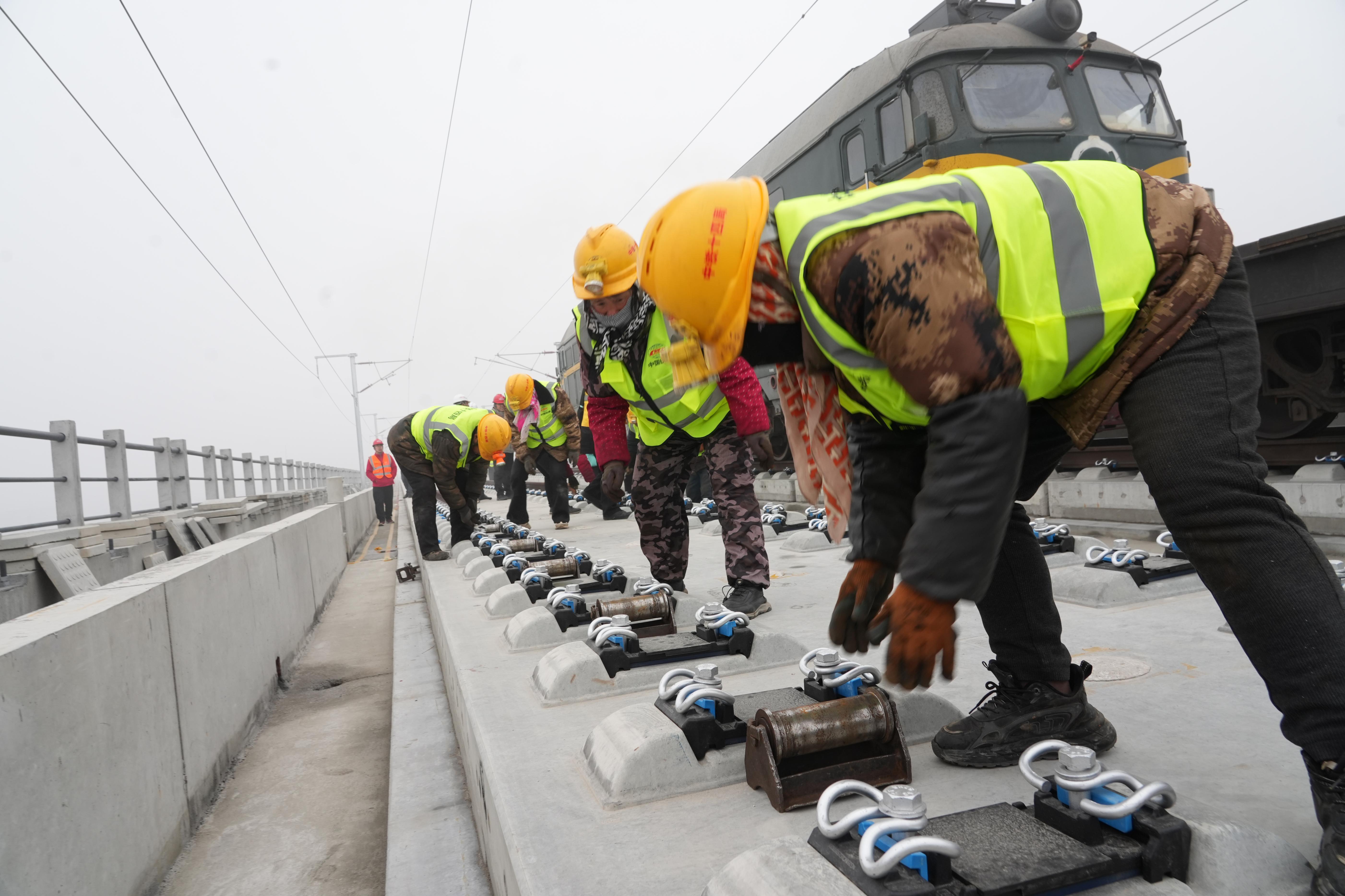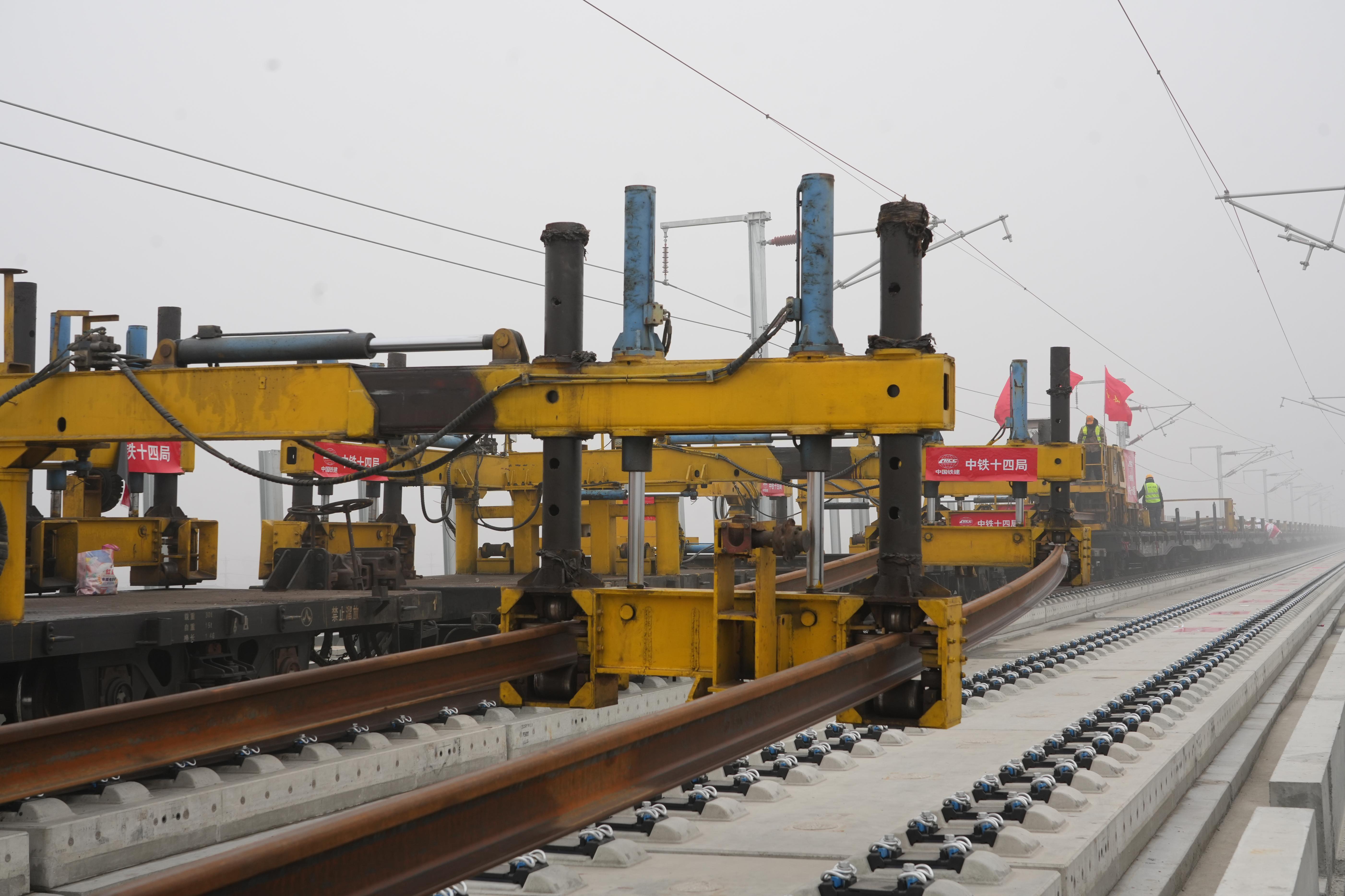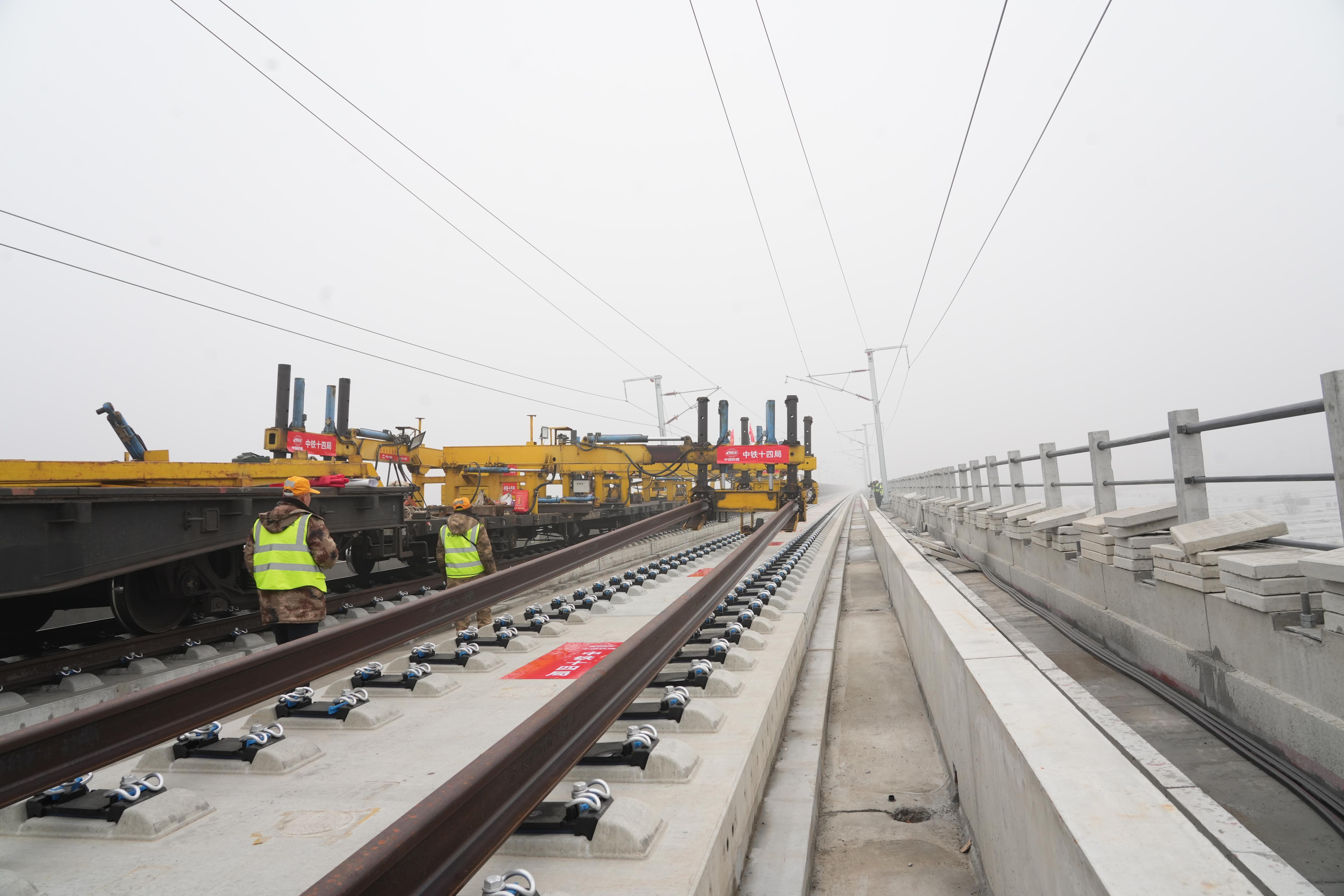 12月19日上午,在河北省邢台市清河县内的京港高铁雄商段铺轨施工现场,建设者将最后一对500米长钢轨平稳铺设就位,这意味着京港高铁雄商段正线铺轨顺利完成,为线路按期开通运营奠定了坚实基础。