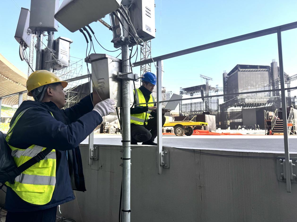 针对晚会现场可能出现的高话务量和高流量需求,衢州分公司在演唱会现场及周边区域,部署了先进的5G-A三载波聚合基站。该技术通过2.6GHz和4.9GHz多频段的协同工作,显著提升网络容量和速率,为用户带来更快速、更稳定的5G网络连接体验。此外,为应对5G用户持续增长带来的流量压力,在用户密集区域有针对性增加5G设备作为容量补充,有力支撑了高清直播、在线互动等高带宽应用顺畅运行。