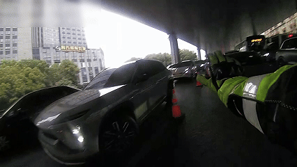 他带领车子沿应急车道行驶