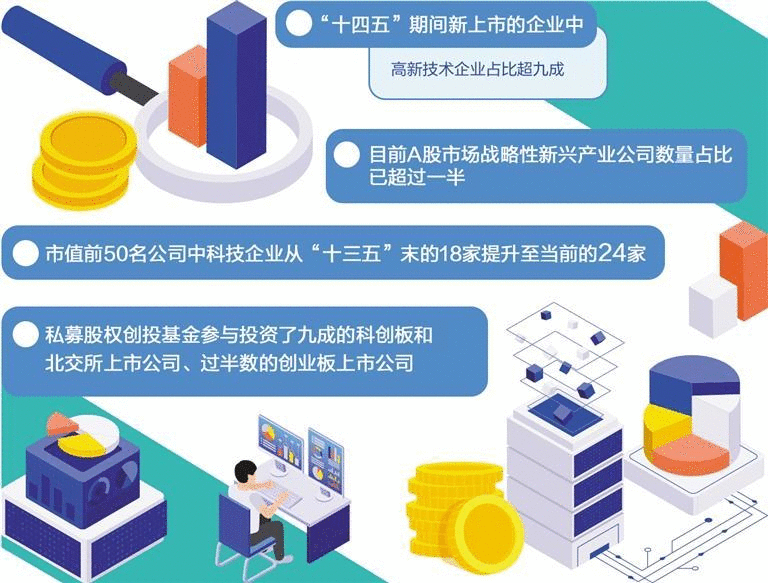 科技创新和产业创新是发展新质生产力的基本路径。“十四五”期间,我国资本市场持续深化发行上市、并购重组、股权激励等领域改革,优化制度和产品供给,引导各类要素资源加快向创新领域集聚,为支持科技创新和产业转型升级提供了重要支撑。