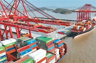 船舶近日停靠在宁波舟山港梅山港区装卸货物。
