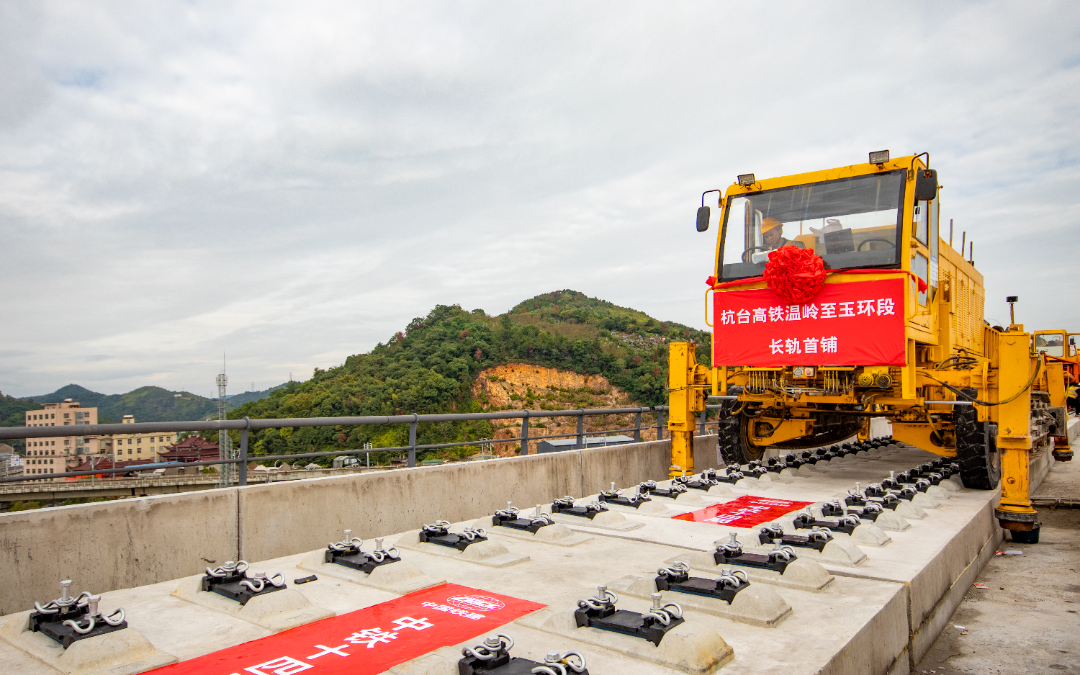 11月5日,项目首条长钢轨于温岭市泽国镇顺利完成铺设,标志着项目进入了轨道工程建设阶段。