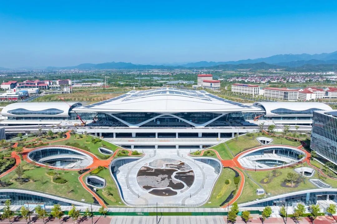 衢州西站位于衢州市高铁新城西侧,以“水韵绿洲,科创巨舰”为设计理念。站房整体造型以远景为衬,抬眼望去青山环绕、美如画境;立面流动的线条勾勒出极富科技感的建筑形态,似一艘悬浮的星际巨舰,预示着衢州科创发展的美好未来。