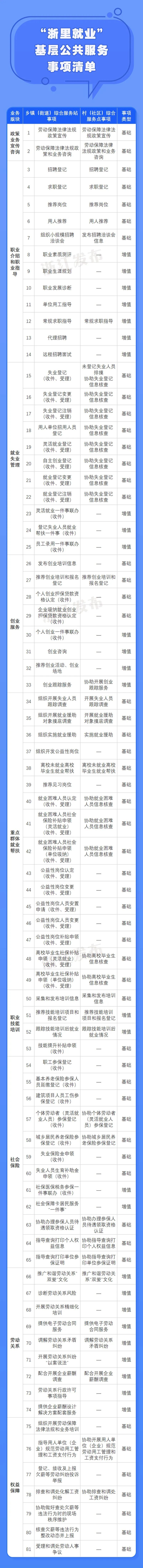 编制“浙里就业”基层公共服务事项清单,清单中的基础事项,按照归口层级有条件的综合服务站点都应提供,增值事项由各地结合实际自行选择提供;特色服务站点可根据区域特点,参照清单自行选择服务事项。