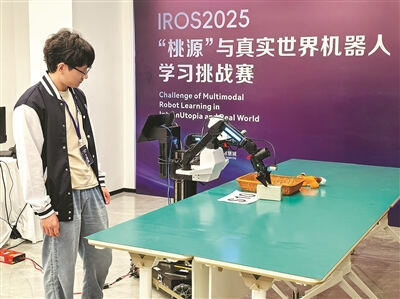 在操作区,机器人正小心翼翼地夹起一串葡萄,精准投入篮中;在导航区,另一台机器人自如穿行,从客厅走到厨房……两个场景背后,正是14支具身智能队伍在激烈角逐。10月19日在钱塘智慧城的杭州智能机器人产业园,IROS 2025“桃源”与真实世界机器人学习挑战赛线下总决赛举行。这场聚焦“仿真到现实”的科技赛事,正为人工智能融入实体场景写下生动注脚。
